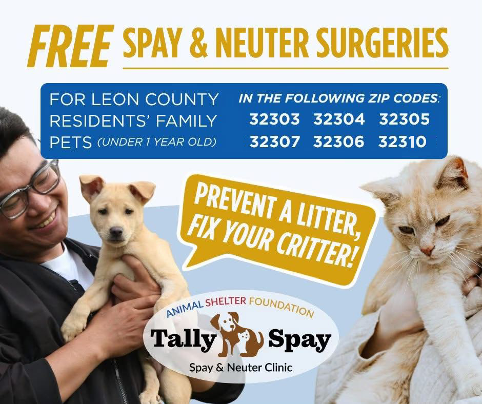 - Tally Spay accepts vouchers from the Animal Shelter Foundation, Be the Solution, Jackson County Florida and Franklin County Humane Society – Eastpoint, Florida, Calhoun County Animal Control Voucher Program, and ASF Community Cat Program participants.